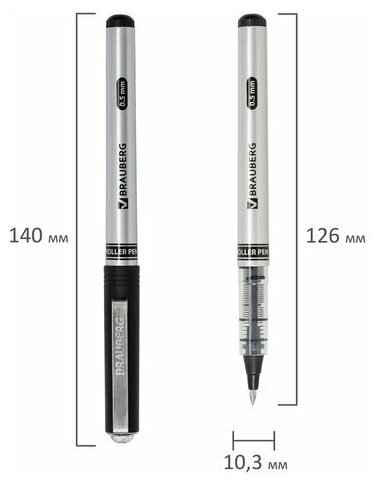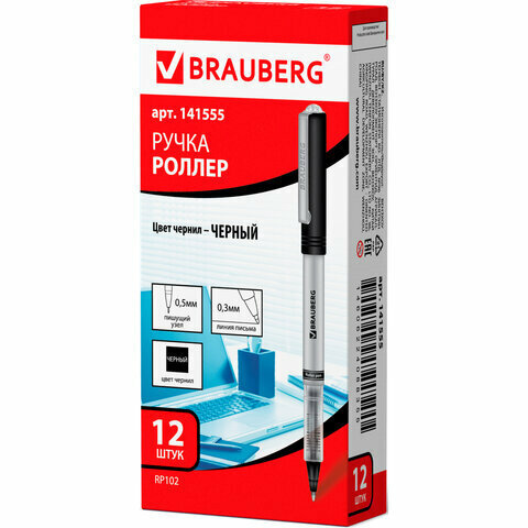 Ручка-роллер BRAUBERG "Flagman", черная, корпус серебристый, хромированные детали, узел 0,5 мм, линия письма 0,3 мм, 141555 В комплекте: 12шт.