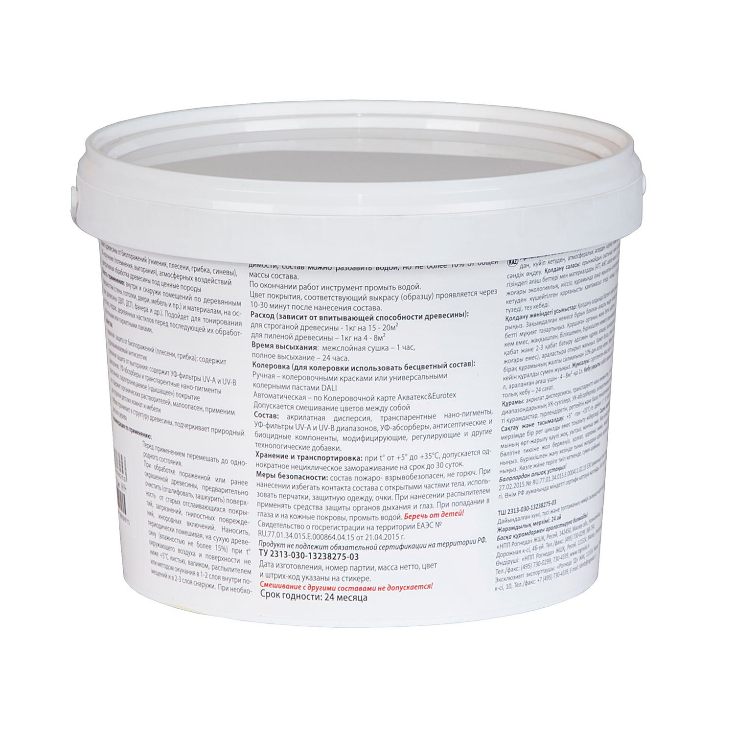 Антисептик Eurotex Аквалазурь 2.5кг Белый Акриловый для Внутренних и Наружных Работ / Евротекс Аквалазурь.*