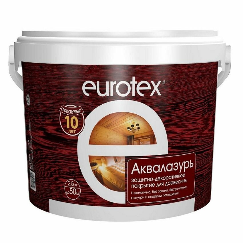 Аквалазурь EUROTEX защитно-декоративное покрытие для дерева, Палисандр 2,5кг