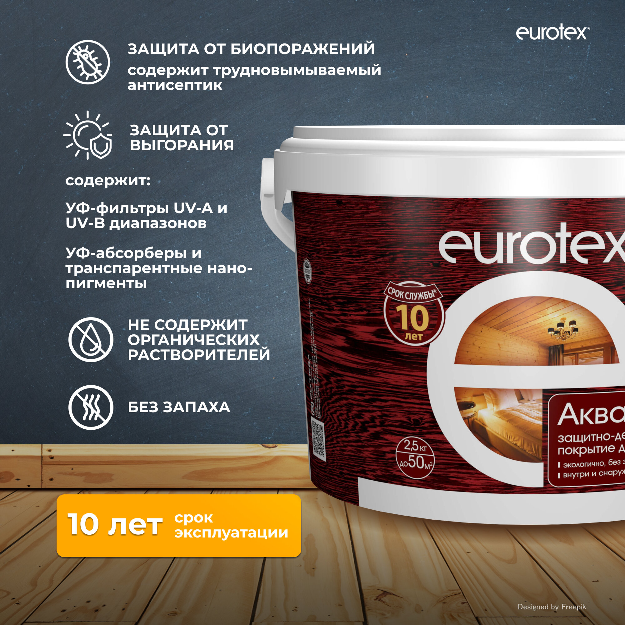 Аквалазурь EUROTEX защитно-декоративное покрытие для дерева, Палисандр 2,5кг