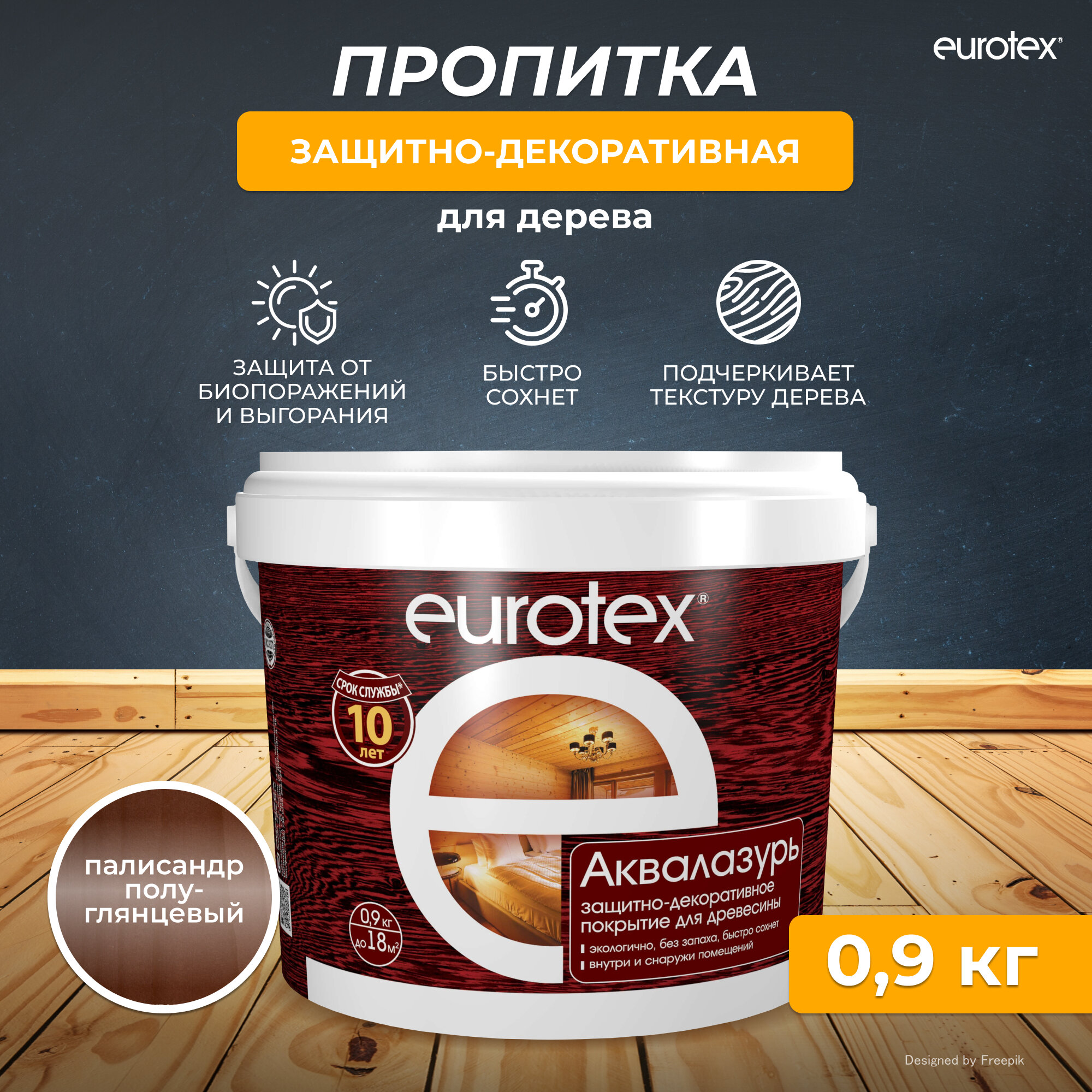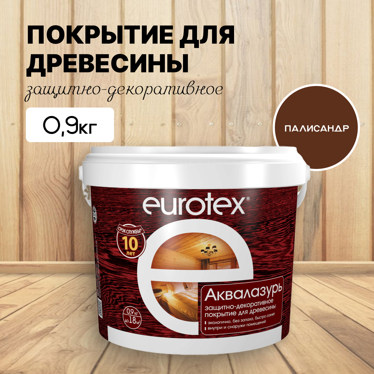 Аквалазурь EUROTEX защитно-декоративное покрытие для дерева, Палисандр 0,9кг