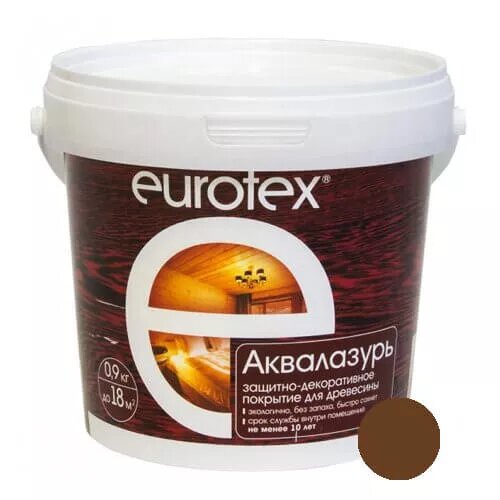 EUROTEX Защитно-декоративное покрытие для дерева Аквалазурь, полуглянцевое, орех 0,9 кг 15598