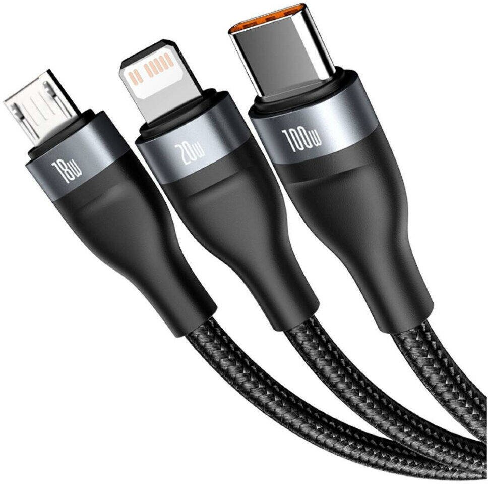 Usb-C Кабель-зарядка Micro+Lightning+Type-C Baseus Flash 100W 1.5м (CASS030201) черный