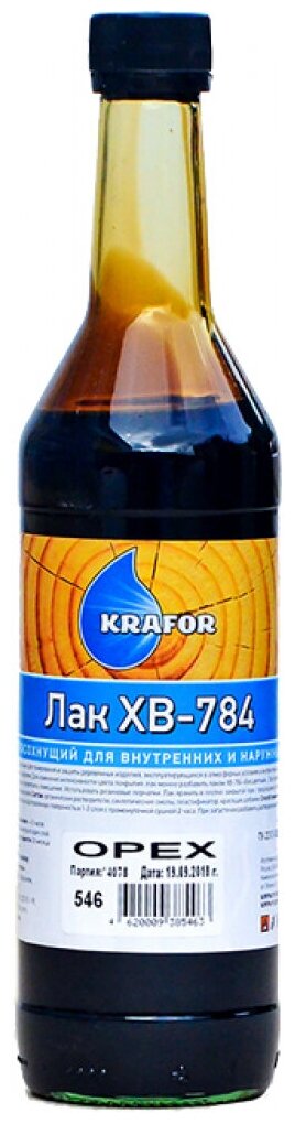 Лак ХВ-784 быстросохнущий Krafor, глянцевый, 0,5 л, сосна, 1шт, стеклянная бутылка