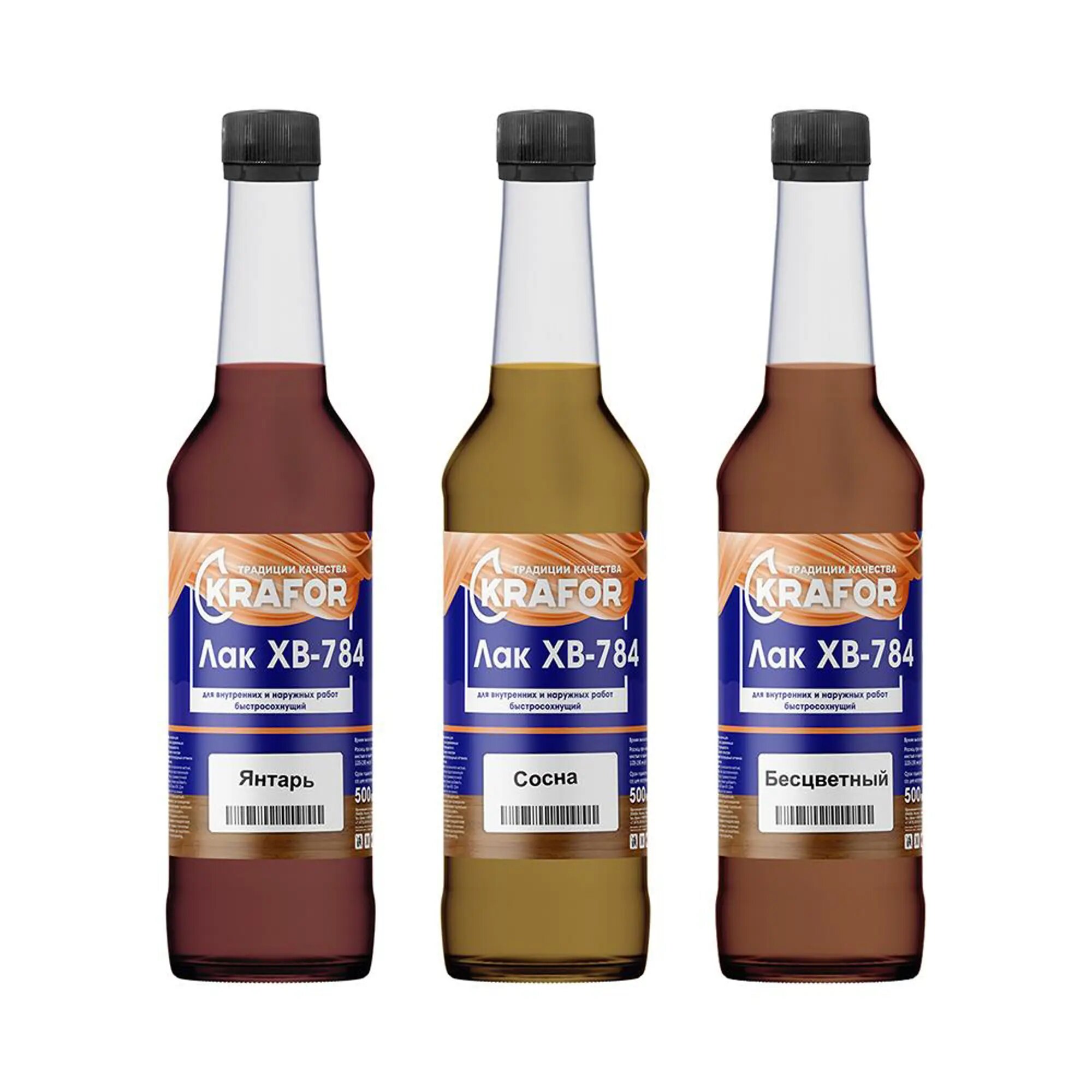 Лак ХВ-784 быстросохнущий Krafor, глянцевый, 0,5 л, сосна, 1шт, стеклянная бутылка