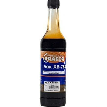 Лак ХВ-784 быстросохнущий Krafor, глянцевый, 0,5 л, бесцветный, 1шт, стеклянная бутылка