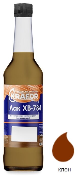 Лак ХВ-784 быстросохнущий Krafor, глянцевый, 0,5 л, клен, 1шт, стеклянная бутылка