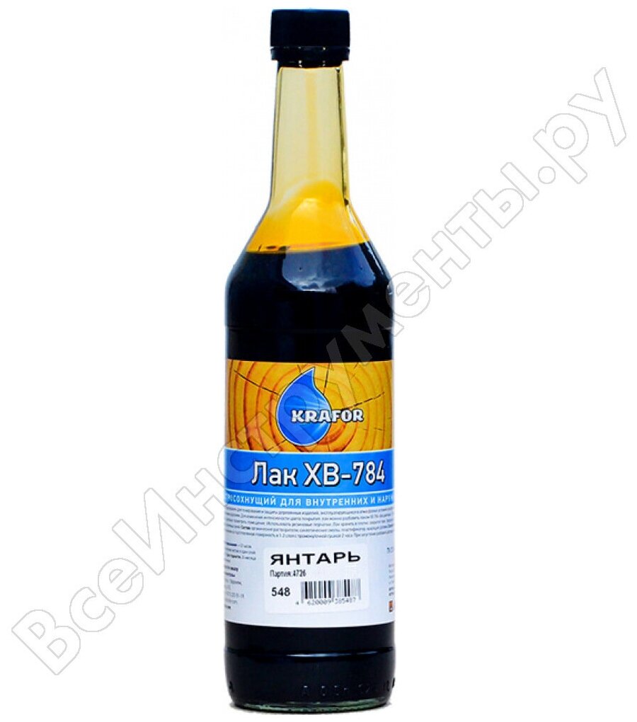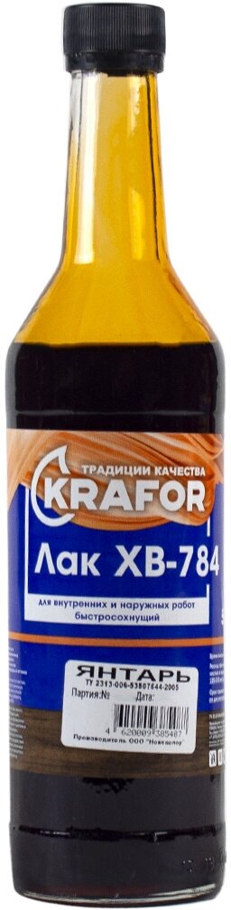 Лак ХВ-784 быстросохнущий Krafor, глянцевый, 0,5 л, янтарь, 1шт, стеклянная бутылка