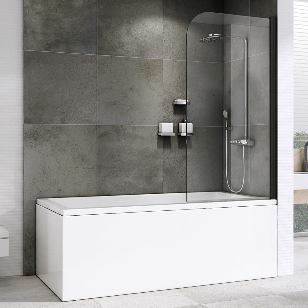 Шторка для ванны Abber Immer Offen 100x140 AG72100B профиль черный, стекло с рисунком
