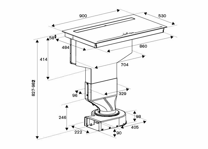 Индукционная варочная панель со встроенной вытяжкой Bertazzoni P904IBHNE