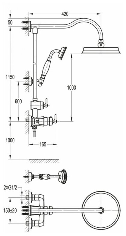 | Дополнительная информация | высота стойки для душа: 1200 мм |