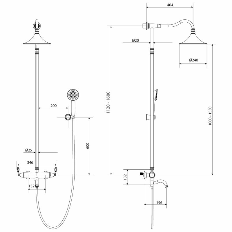 | Дополнительная информация | высота стойки для душа: 1680 мм; диаметр душевой лейки: 95 мм; диаметр верхнего душа: 240 мм |