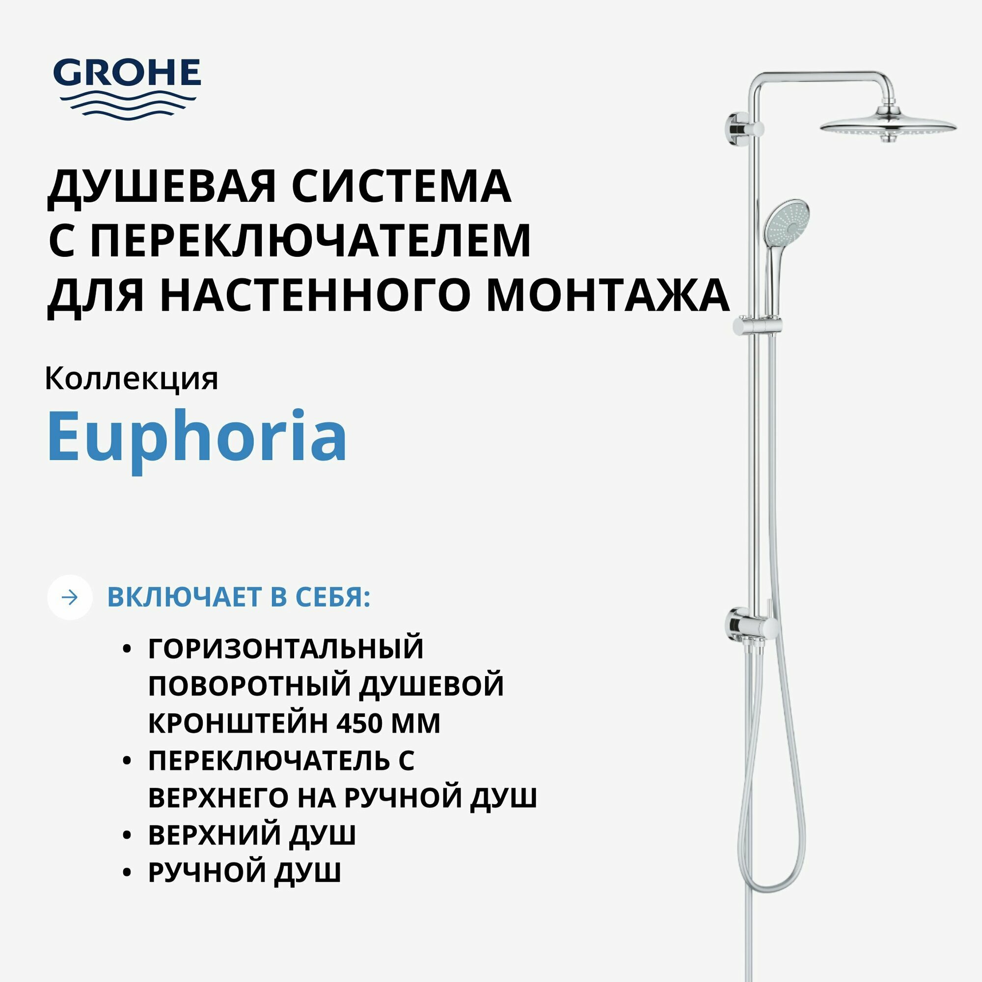Душевой гарнитур Grohe Euphoria с верхним душем, хром (27421002)