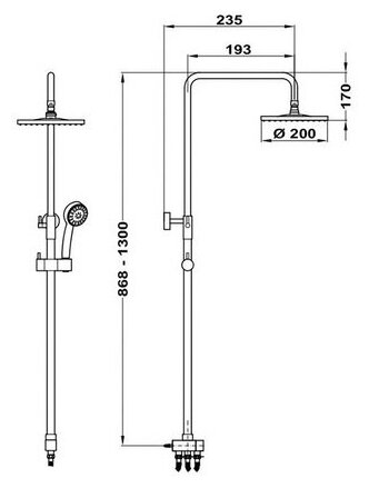 | Дополнительная информация | высота стойки для душа: 1168 мм; диаметр верхнего душа: 200 мм |