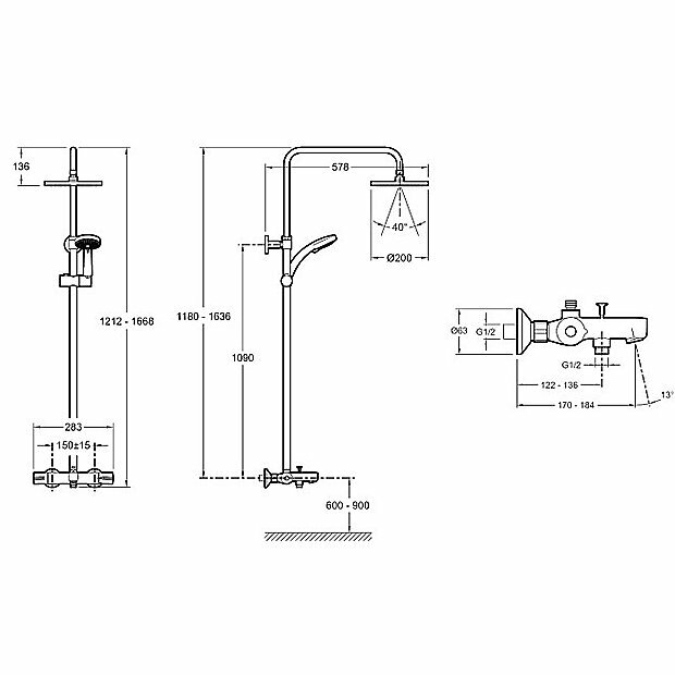 | Дополнительная информация | высота стойки для душа: 1668 мм; диаметр верхнего душа: 200 мм |