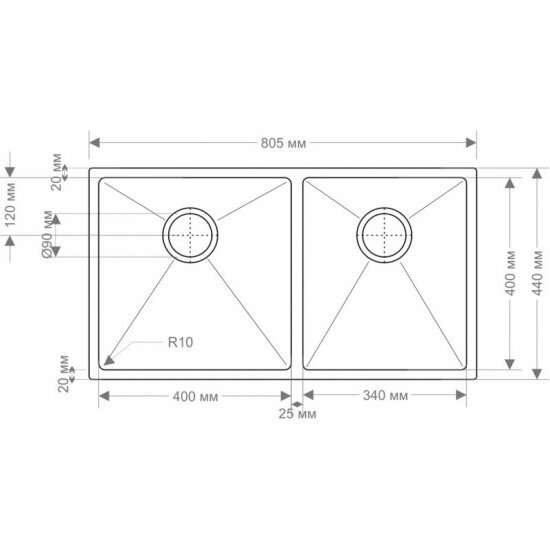 Мойка Seaman Eco Marino SME-805DR, матовая нержавеющая сталь, две чаши, подстольный монтаж