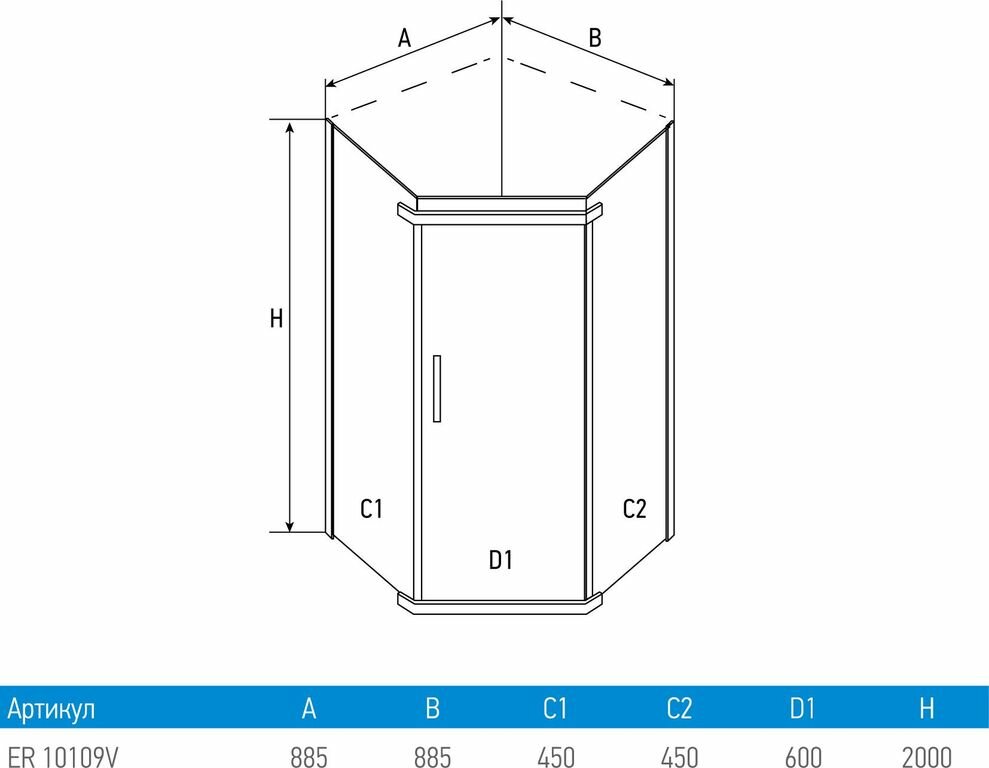 Душевое ограждение Erlit ER10109V-C4 (900x900x2000) пятиугольное, тонированное