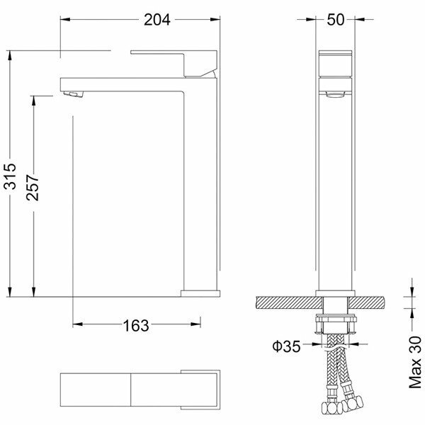 | Высота излива | 257 мм / 315 мм |