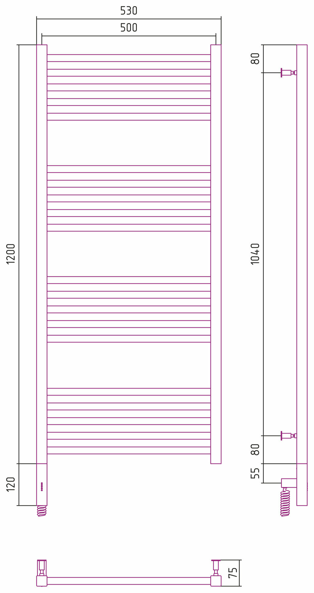 Водяной полотенцесушитель Aquanet Mauro(г2) 800x500