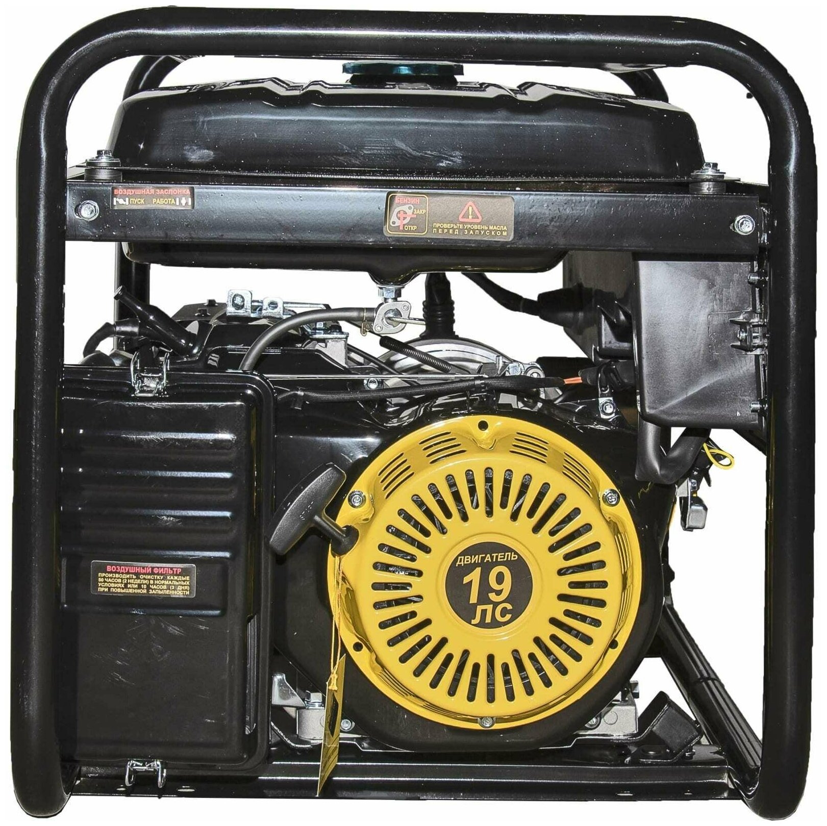 | Плюсы: | 8 часов непрерывной работы без долива топлива, запуск двигателя электростартером и вручную, устойчиво держит максимум нагрузки |