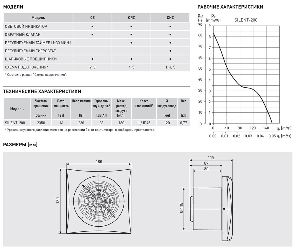 Вентилятор вытяжной 120 SILENT-200 CZ с обратным клапаном