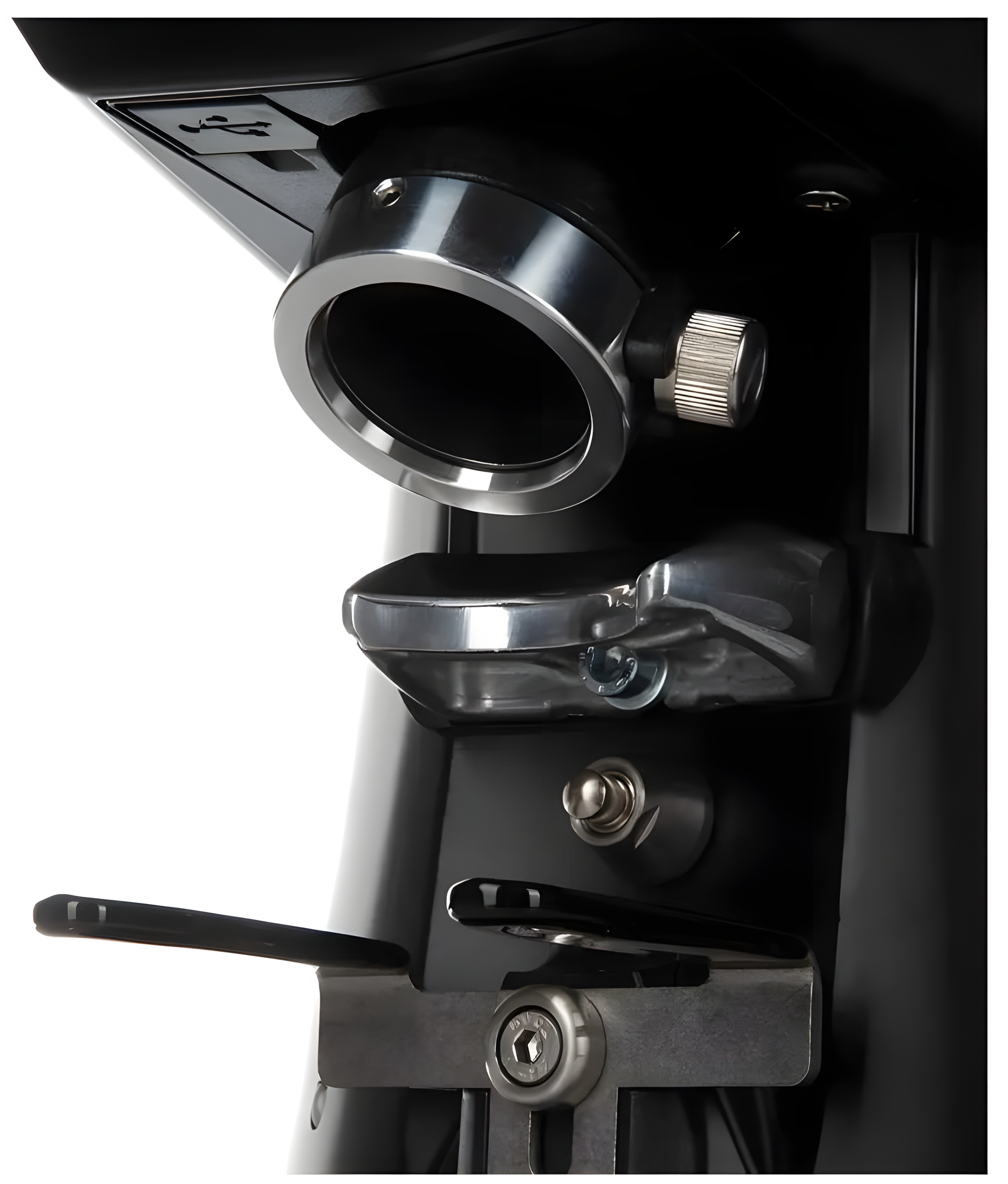 Когда нужно остатки прежних зёрен удалить из жерновов, достаточно держать палец на кнопке "рука" и, когда закончит сыпаться помол снизу, отпустить. Подставку-вилку под холдер открутил, мне без неё удобней. Ёмкость для зёрен не использую, т.к. у меня разный кофе для эспрессо и капучино. Засыпаю прям до верха алюминиевой горловины - хватает на 3 чашки примерно. Только нужно закрывать блюдцем сверху, чтобы не выскакивали зёрна во время перемалывания. Мне в ней только сам регулировочный диск не понравился, он тугой и не имеет нормальных ориентиров. Получается, я должен на глаз вымерять по всяким клёпкам и прочим имеющимся выделяющимся винтикам, а потом запоминать это положение. См. фото, там чёрные колпачки мне служат ориентиром, но это хорошо, что они есть, а то бы совсем странно было. Могли бы шкалу нормальную нанести на диске и на цилиндре, вокруг которого он вертится. Да и фиксатор диска тоже тугой. Но на самом деле это мелочи, ибо свои задачи она выполняет, а остальное просто пожелания ради удобства. Уже скоро год эксплуатации будет. Поскольку моя эксплуатация домашняя, то для меня такая даже с избытком, можно было и проще взять. Но зато такая на больший ресурс заточена, поэтому пусть будет. |