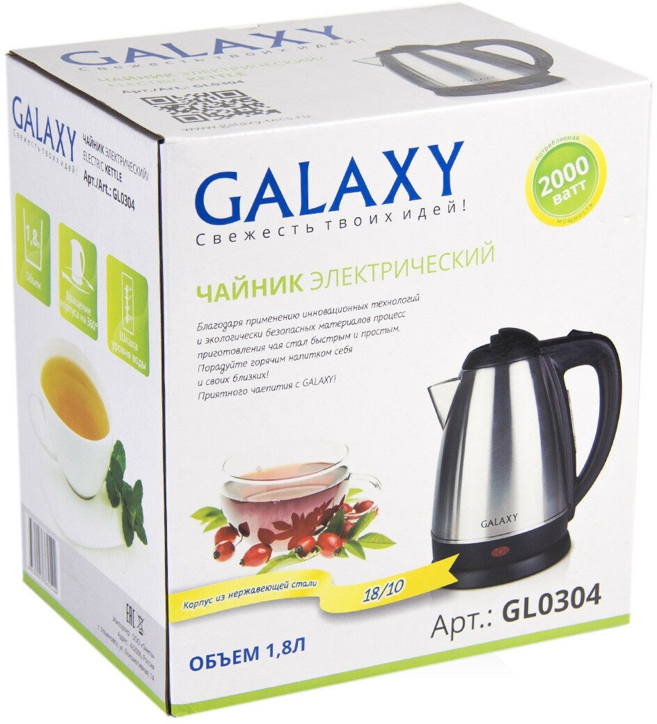Galaxy Чайник Galaxy GL0304, электрический, серебристый (2000Вт, 1.8л) (ret)