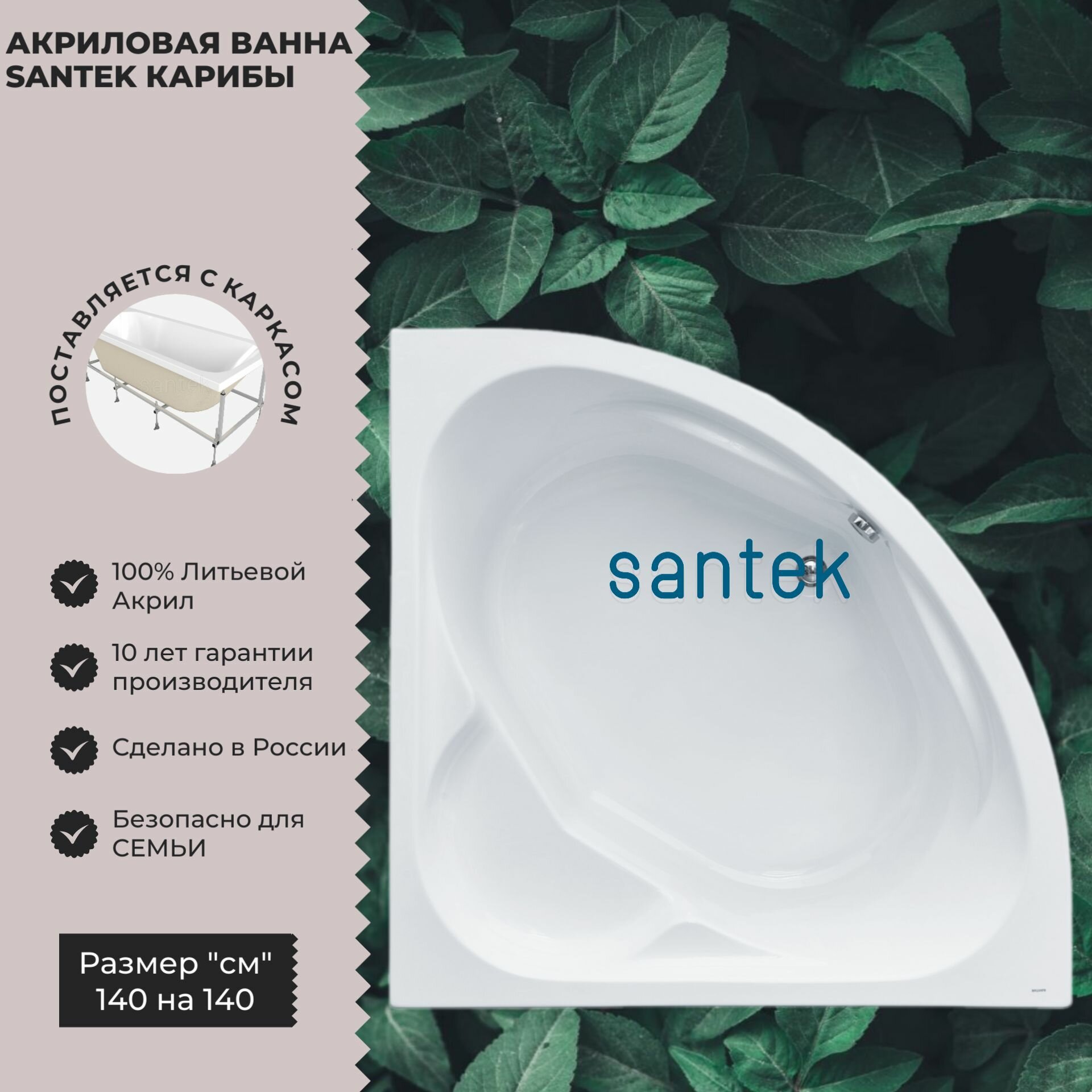 СохранитьАкриловая ванна Santek Карибы 140x140 1.WH11.1.982 интересное: