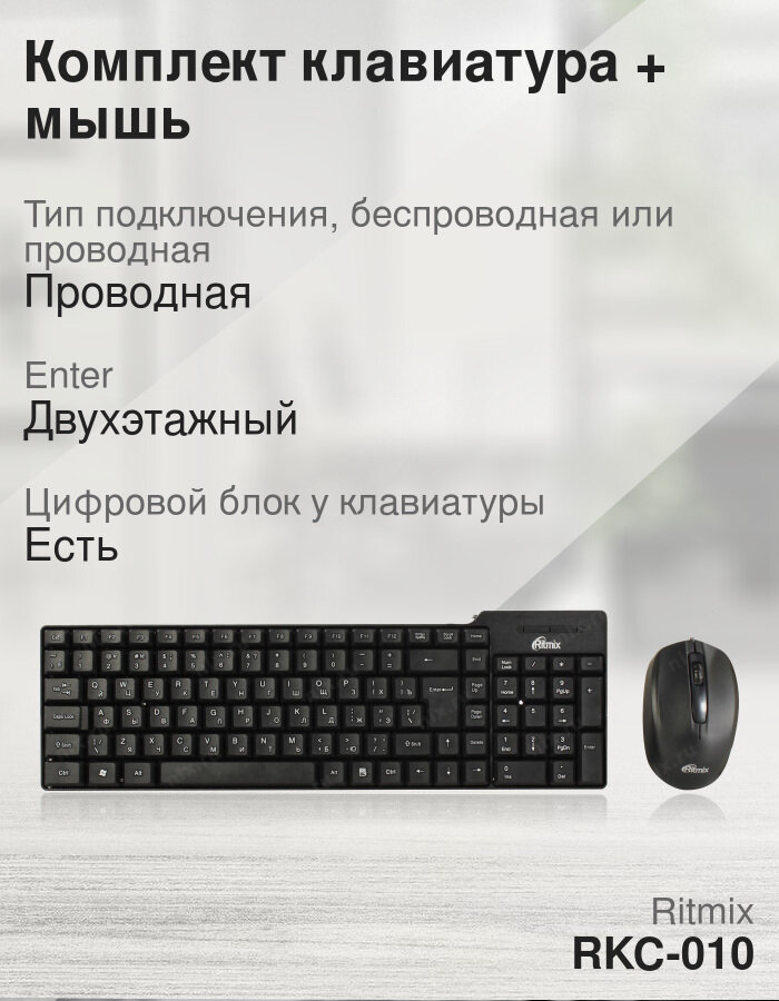 Клавиатура и мышь Ritmix RKC-010 комплект чёрная интересное: