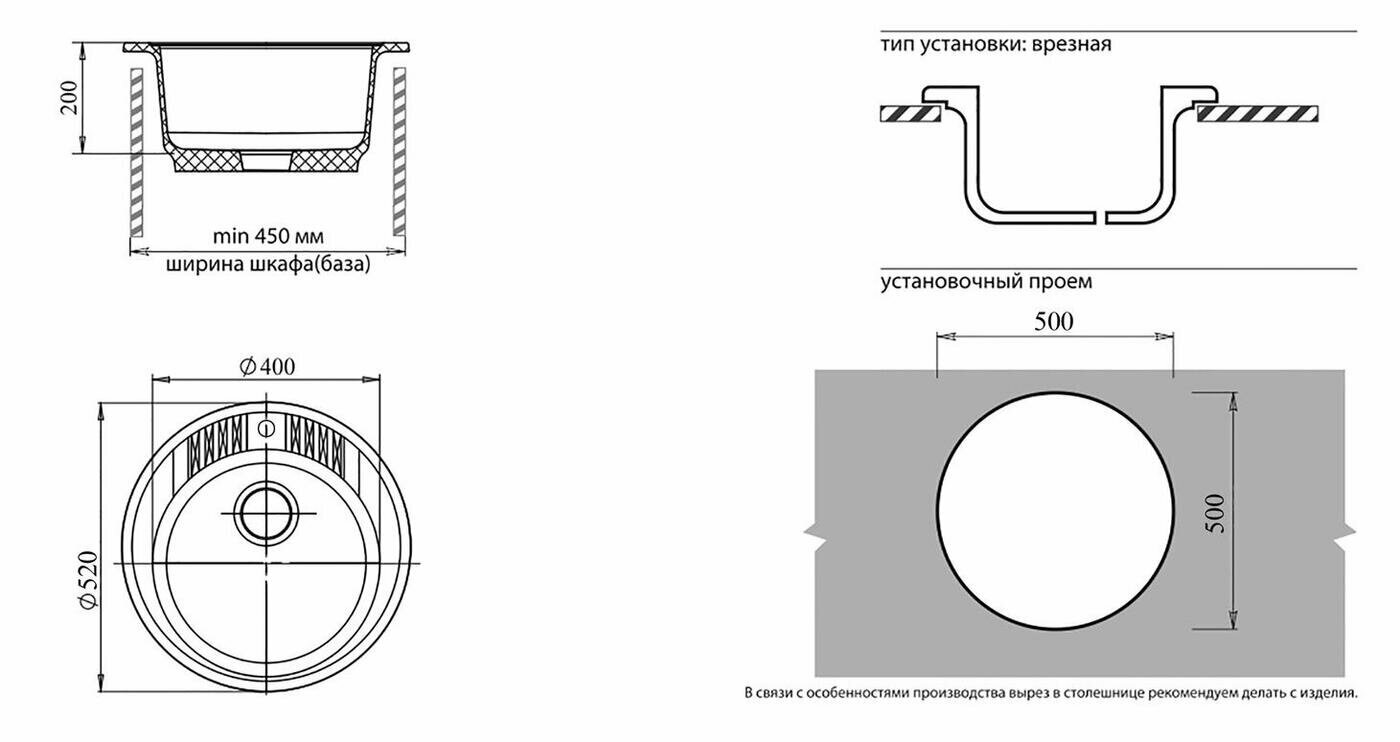 СохранитьМойка GRANFEST GF-R520 D =520 мм, круглая (графит) интересное: