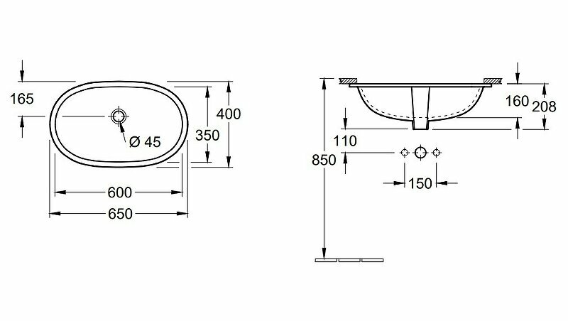 Раковина встраиваемая снизу Villeroy & Boch O'Novo 65 см 41626001
