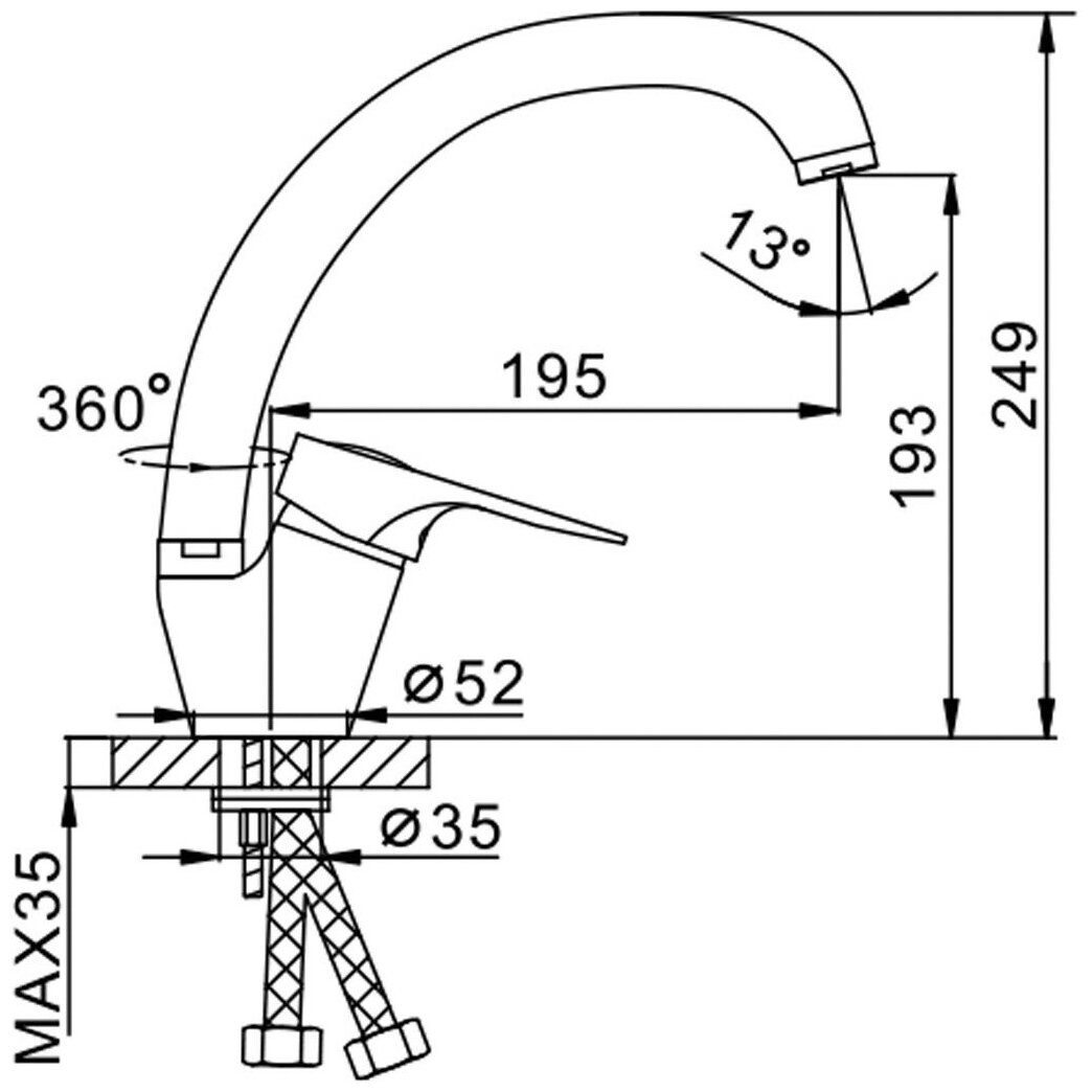 Смеситель для кухни 40к F4104 FRAP с отв боковая