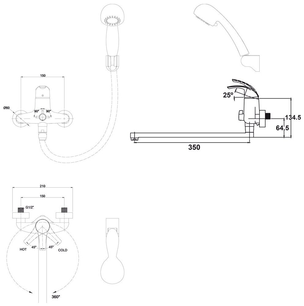 Смеситель для ванны с душем Kaiser Nova 23055В .