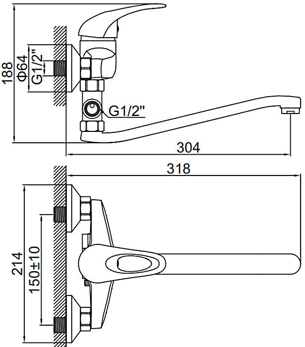 Смеситель L2102-В L-30S для ванны с длинным изливом