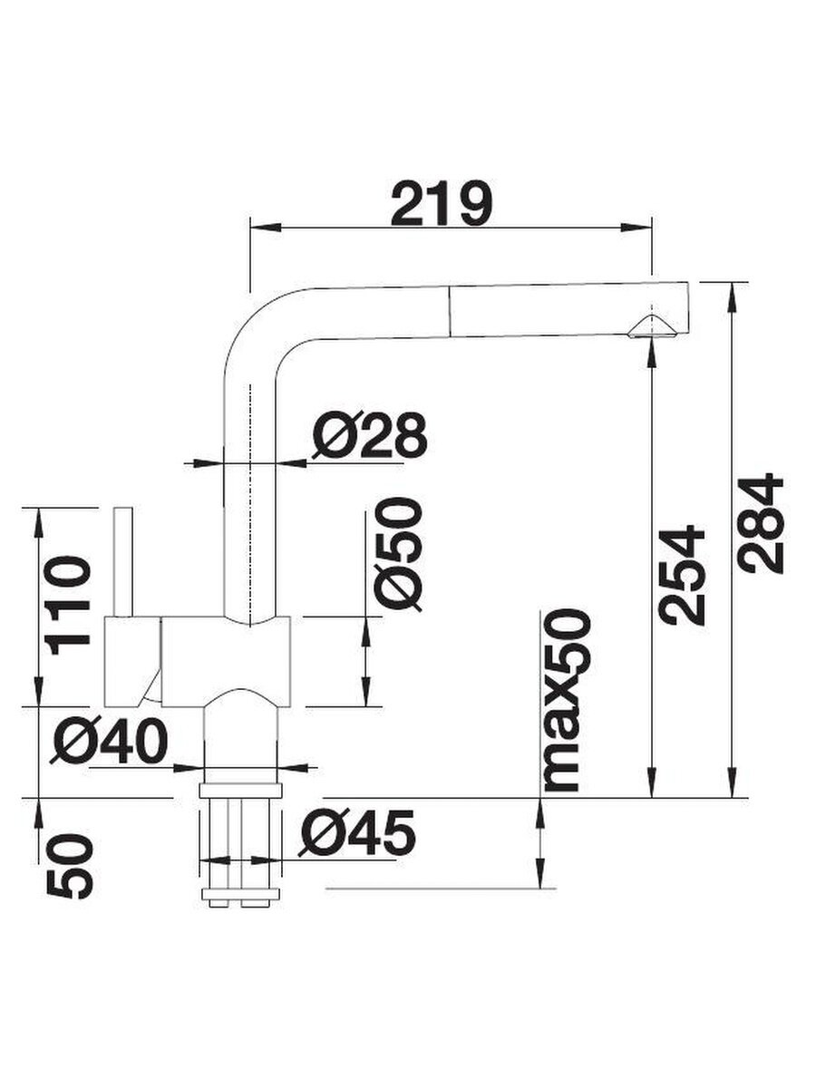 | Длина излива | 219 мм |