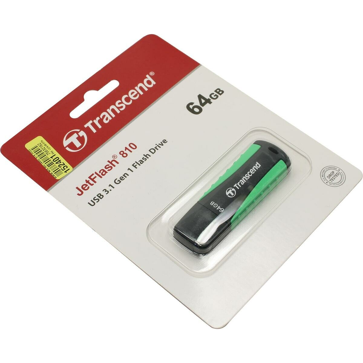 Флешка Transcend "JetFlash 810", 64 Гб, USB 3.1, G1, черно-зеленая (TS64GJF810)