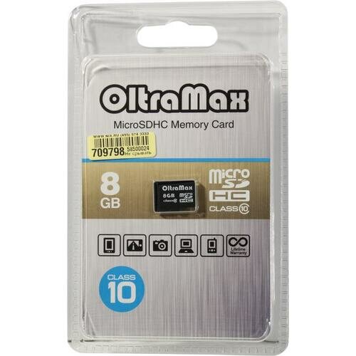 Карта памяти OltraMax microSDHC 8 ГБ Class 10, 1 шт.