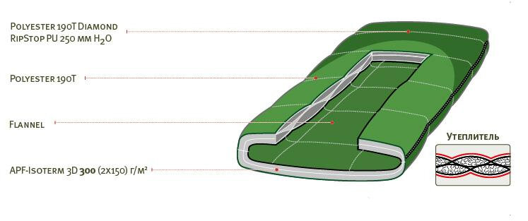 | Характеристики внешнего материала | 190T Diamond RipStop |