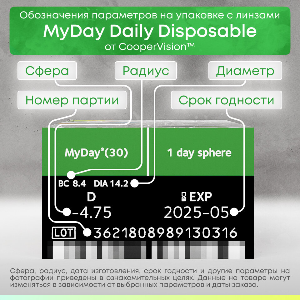 Сохранить"Контактные линзы CooperVision MyDay Daily Disposable (30 линз) -2.25 R 8.4, однодневные, прозрачные" интересное: