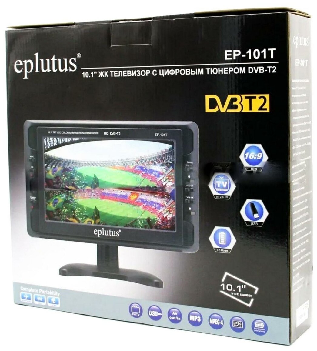 Автомобильный портативный телевизор с DVB-T2 10 Eplutus EP-101T (W3235RU). Разрешение 1024х600, встроенный аккумулятор