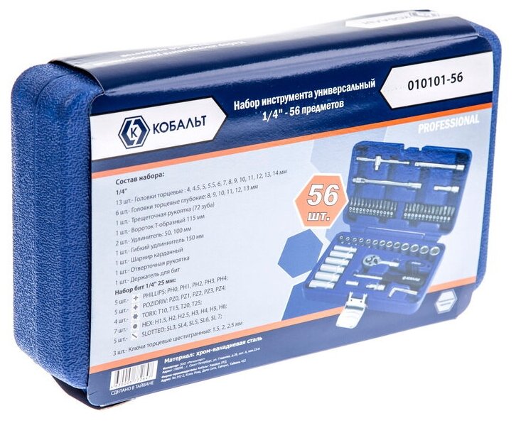 Набор инструмента универсальный кобальт 1/4" (56 предметов) {010101-56}