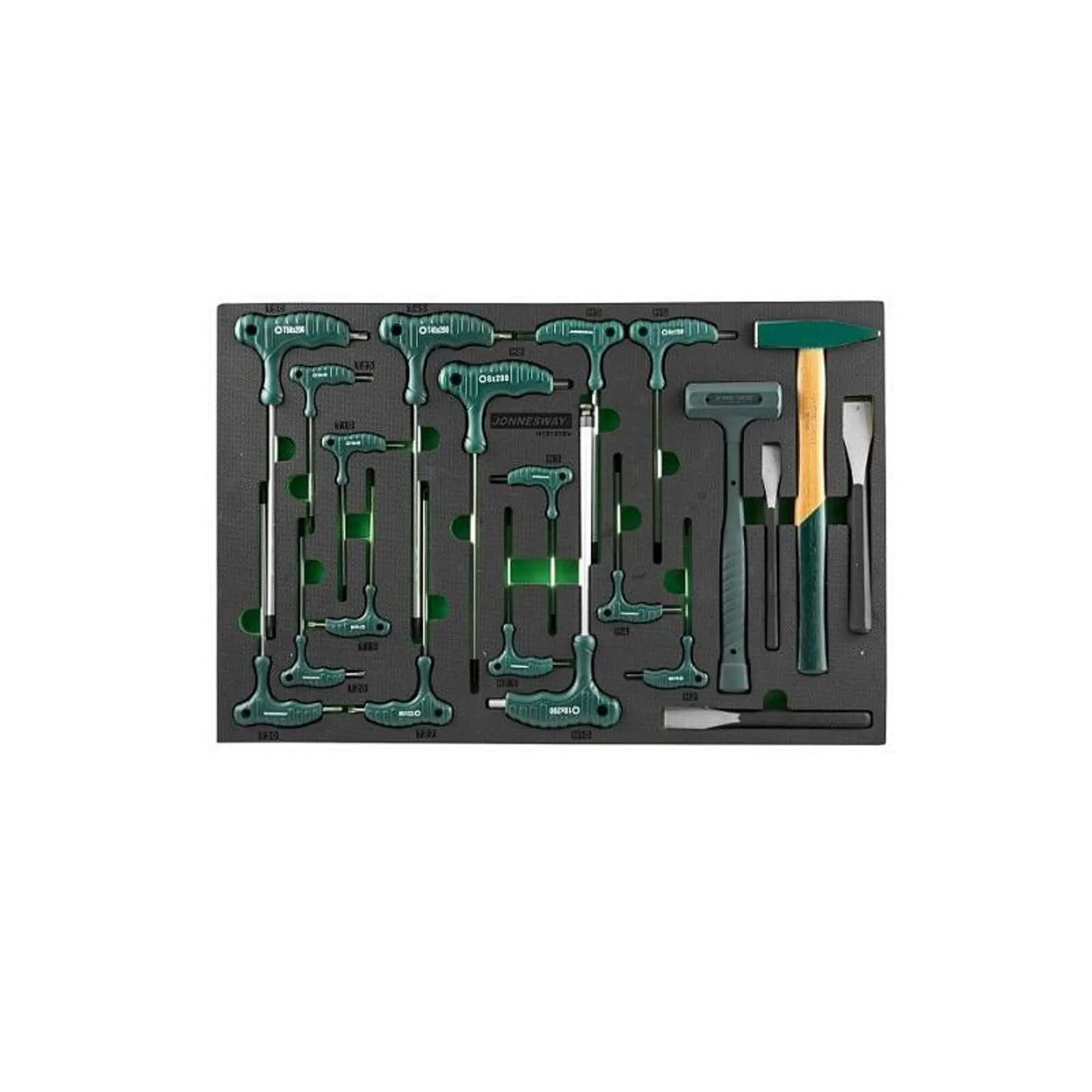 Набор ключей торцевых шестигранных и TORX, молотков и зубил в EVA ложементе 560х400 мм, 21 предмет JONNESWAY