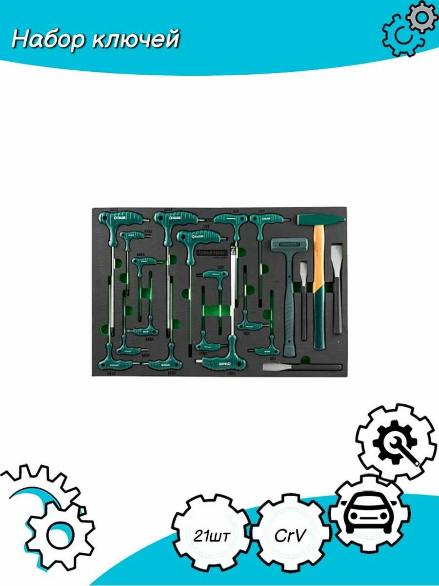 Купить Набор угловых отверток (торцевых ключей), шестигранных и TORX®, молотков и зубил. 21 предмет в EVA ложементе 560х400 мм. Jonnesway H10121SV