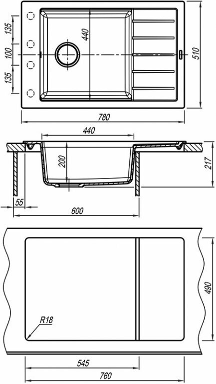 Очень просторная и глубокая, удобное крыло. Имеются 4 подпиленных отверстия, нужные надо выбить. У меня не получилось, думала, разобью все к чертям) Мужа просила. Одно для смесителя пробили и одно для жидкого мыла. В комплекте есть металлическая решетка — выглядит красиво, но я ей пользуюсь редко (зелень сушиться положить разве что), а так убираю, чтоб не мешала. Очень понравилось качество выноса мойки/сифона, который шел в комплекте. Даже есть ответвление для стиральной машины, на случай, если кому-то нужно. Моется легко, несмотря на то, что светлая. Пишут, что порошком нельзя, но я иногда протираю пемо-люксом, и ничего! От свеклы и ягод не окрашивается (но я стараюсь сразу протирать). Кипяток лью — дно не вывалилось. |