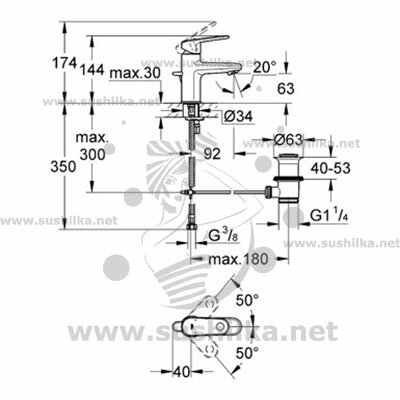 | Высота излива | 63 мм / 144 мм |