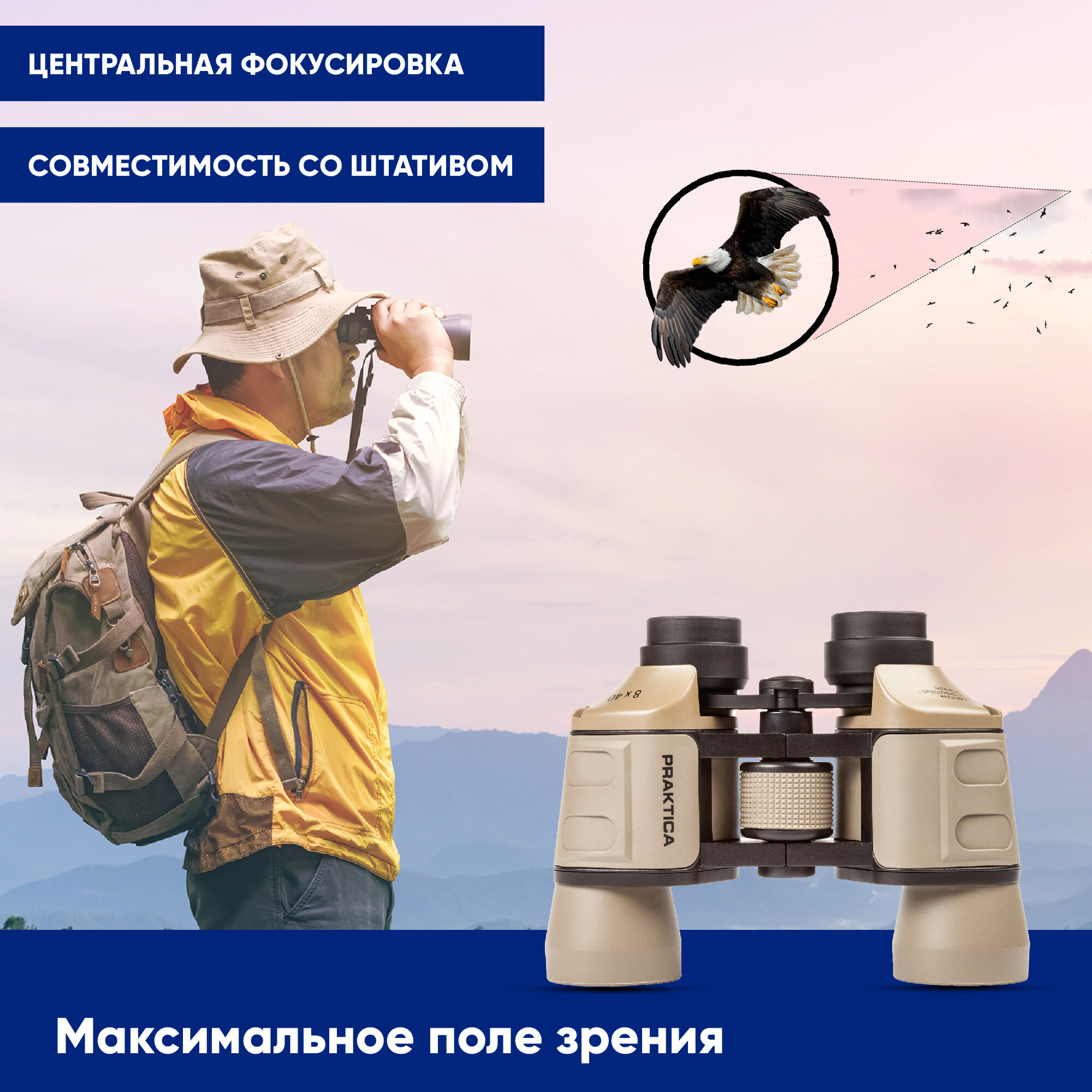 Бинокль Praktica Falcon 8x40 туристический для охоты и рыбалки, песочный интересное: