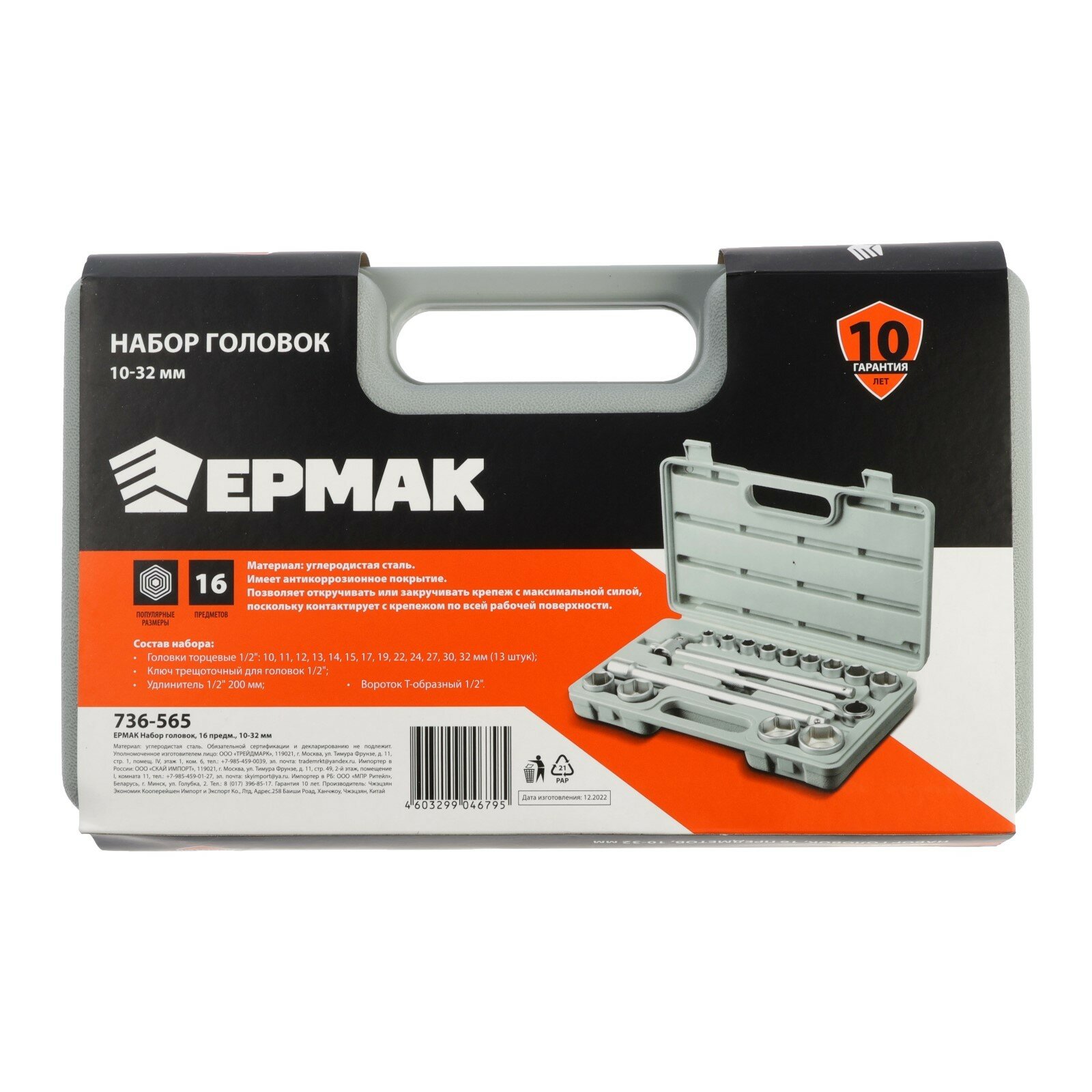 Набор торцевых головок ермак 736-565, с воротками, 1/2", 10 - 32 мм, 16 предметов