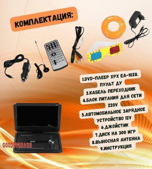 Портативный DVD-плеер XPX EA-1028, черный интересное: