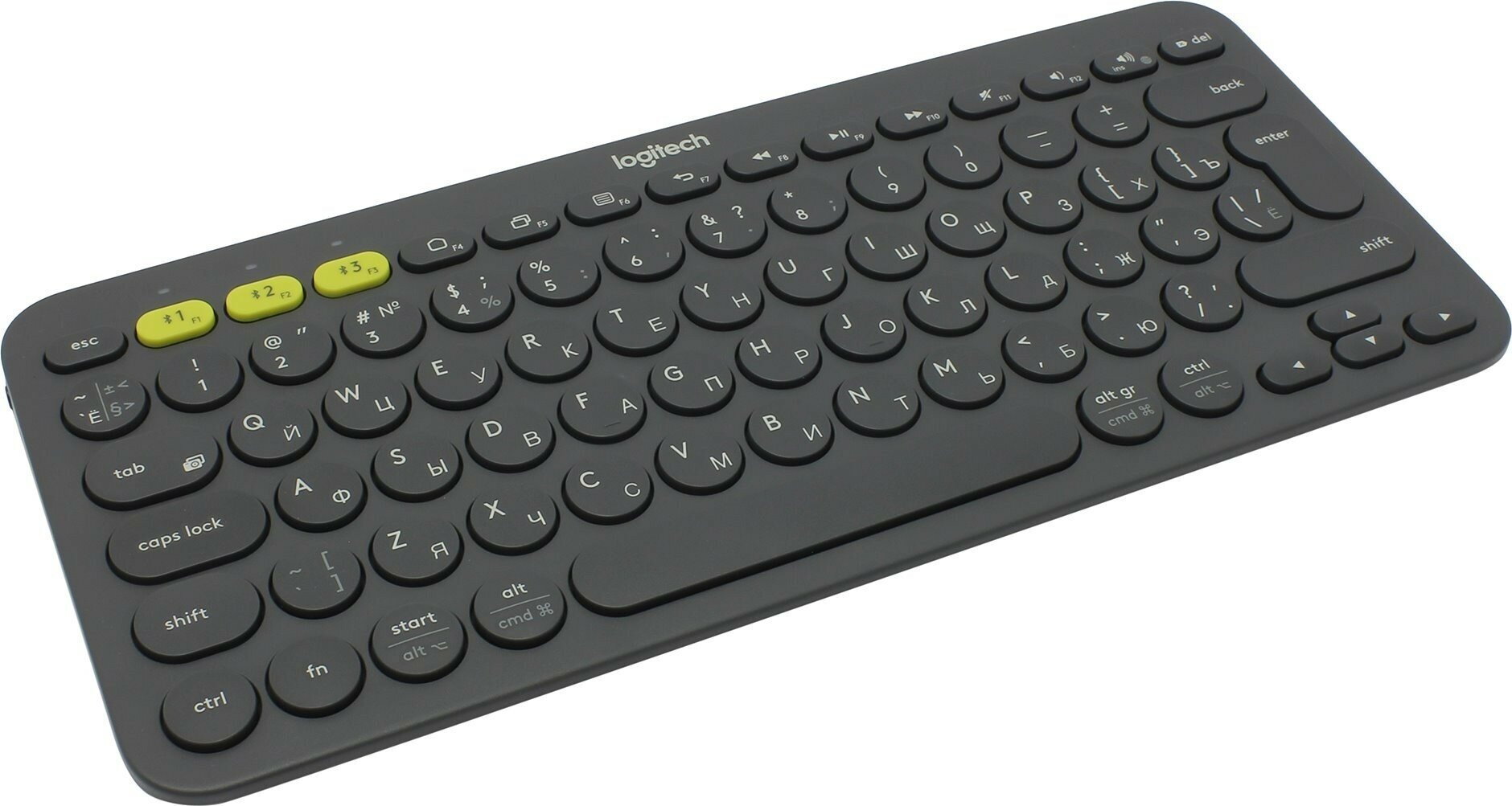 Logitech K380 Беспроводная клавиатура Multi-Device. Черно-белая. Русская гравировка.