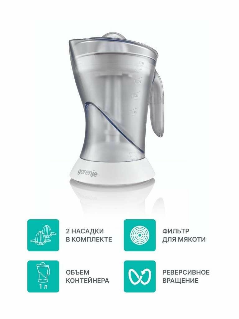 Купить Соковыжималка цитрусовая Gorenje CJ40W 40Вт рез. сок:1мл. белый/прозрачный